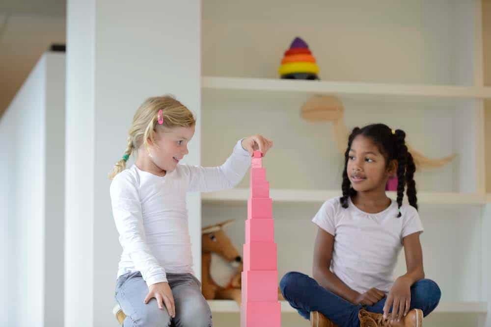The montessori material involves touching and seeing things, so abstract stuff becomes more real through hands-on play.